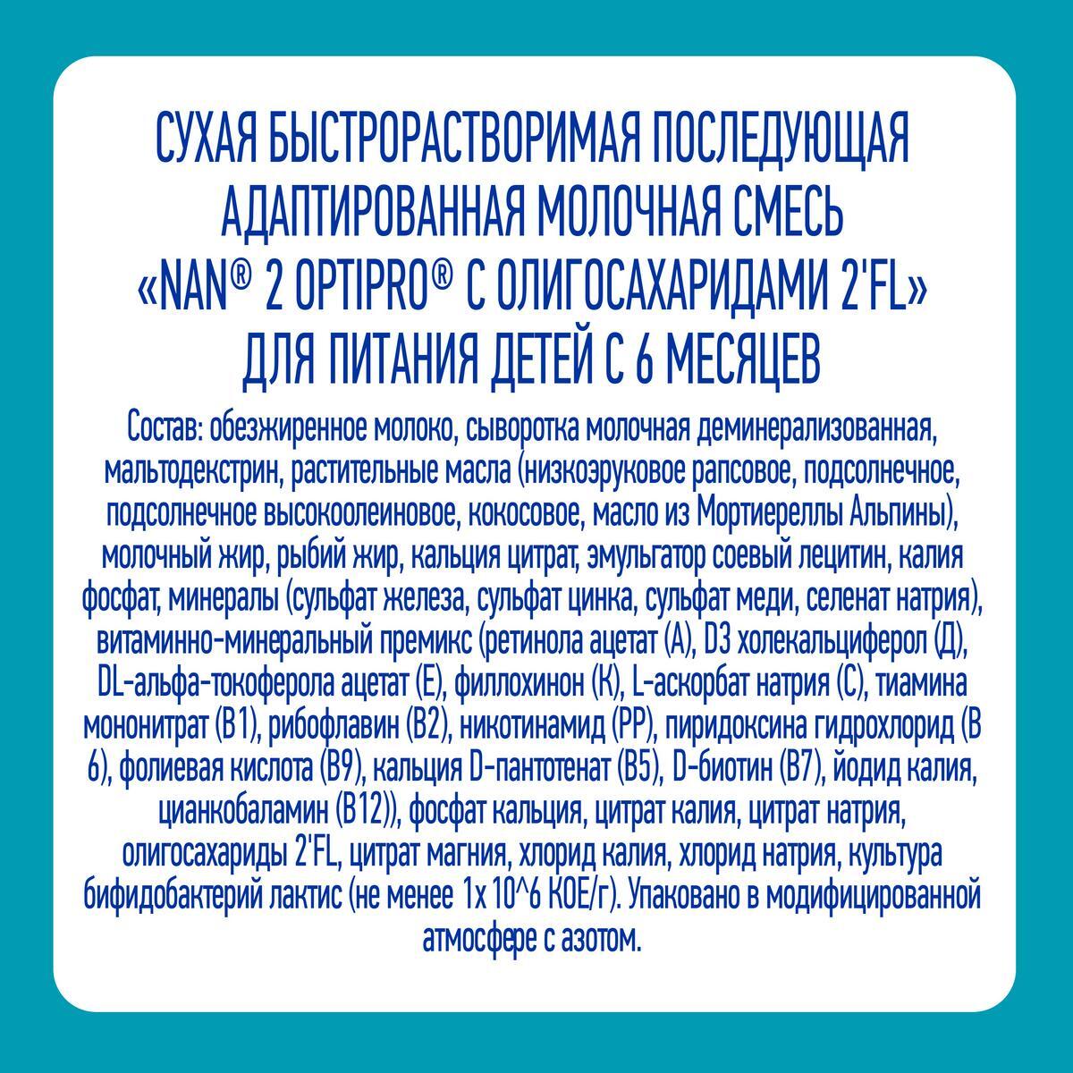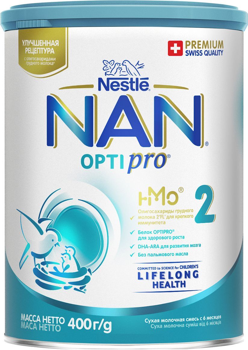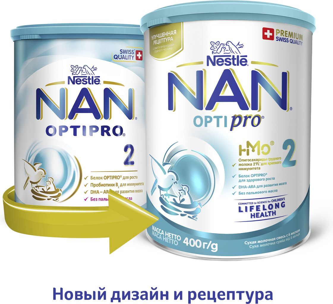Молочная смесь Nestle NAN 2 Optipro, для роста, иммунитета и развития мозга, с 6 месяцев, 400 г