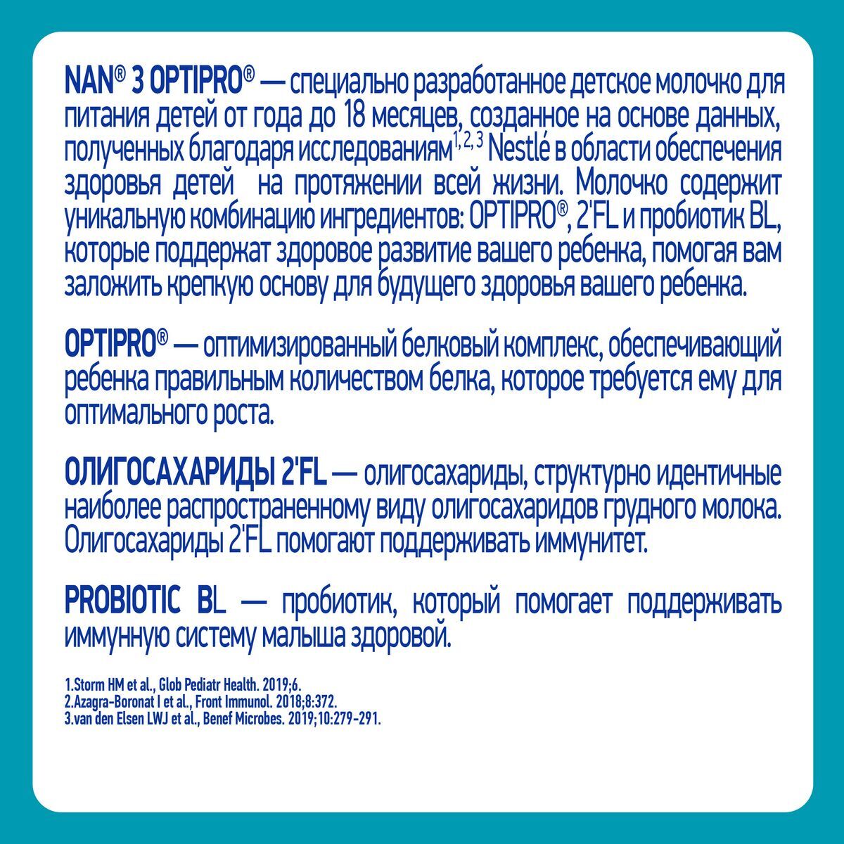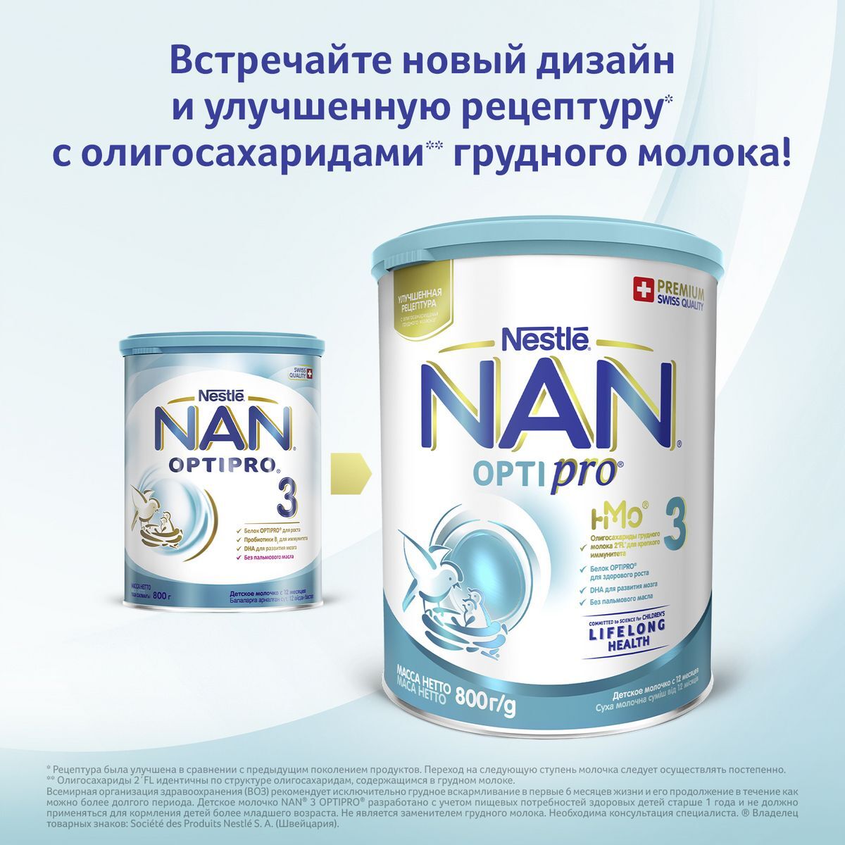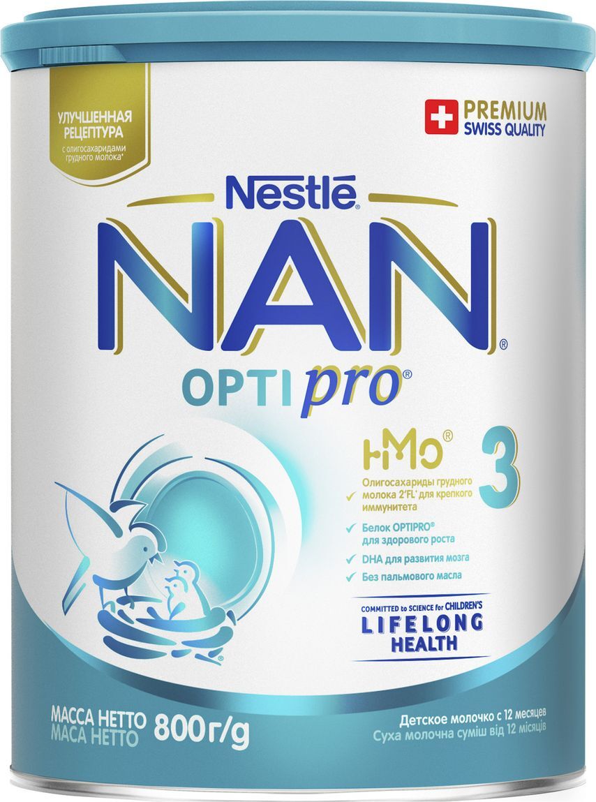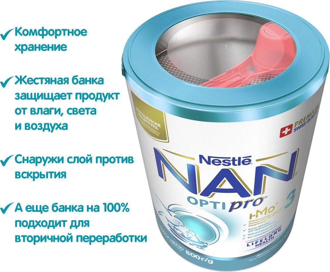 Молочная смесь Nestle NAN 3 Optipro, для роста, иммунитета и развития мозга, с 12 месяцев, 800 г