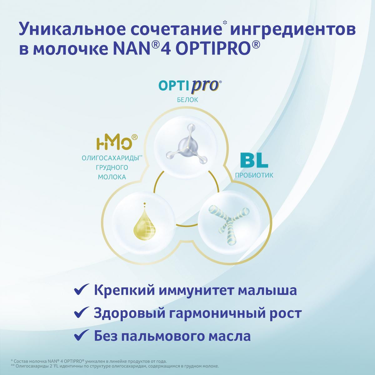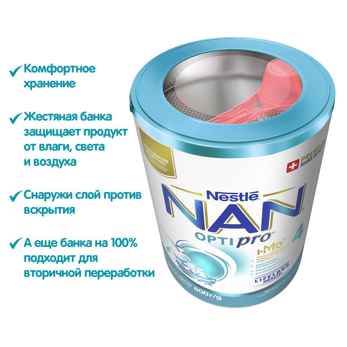 Молочная смесь Nestle NAN 4 Optipro, для роста, иммунитета и развития мозга, с 18 месяцев, 800 г