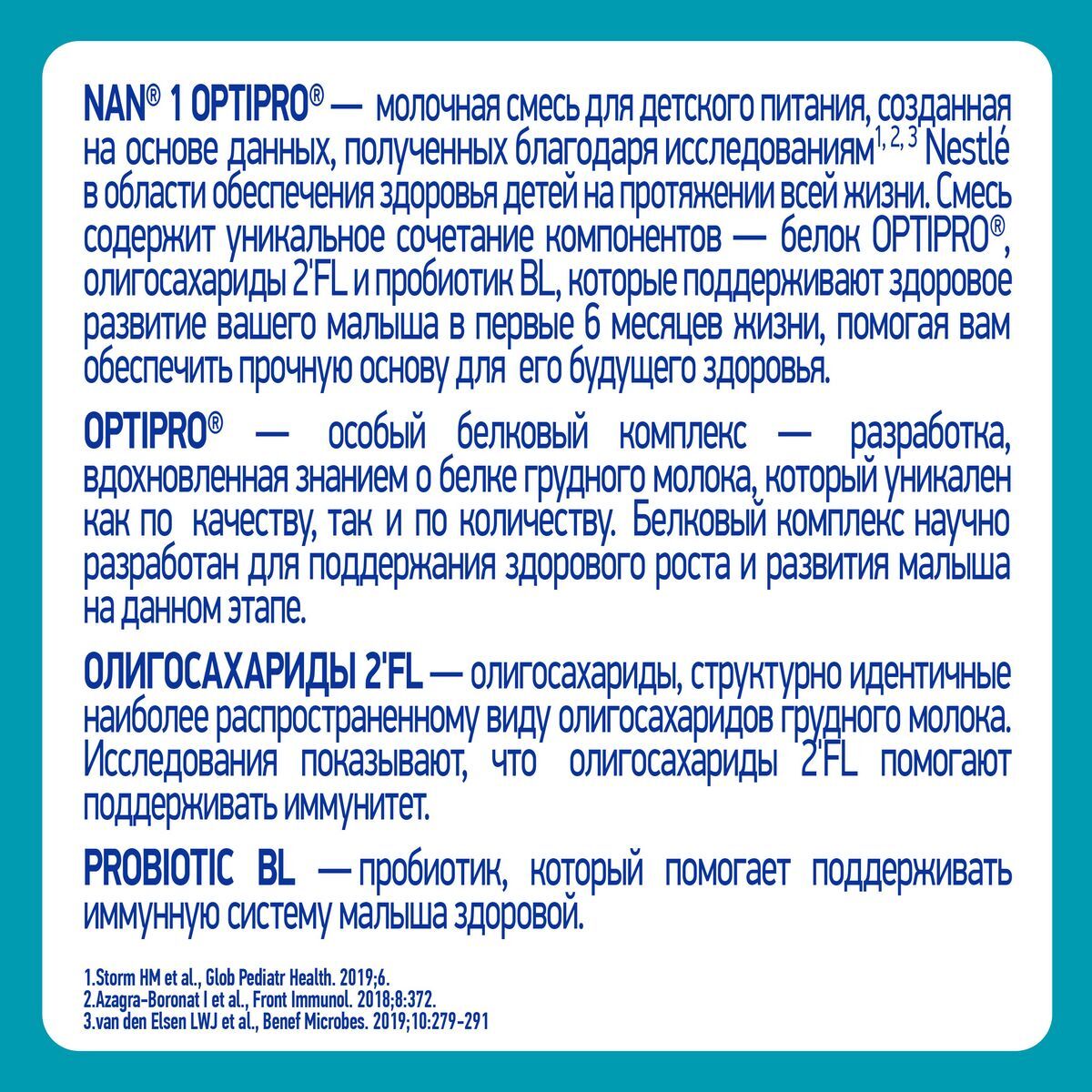 Молочная смесь Nestle NAN 1 Optipro для роста, иммунитета и развития мозга, с рождения, 800 г