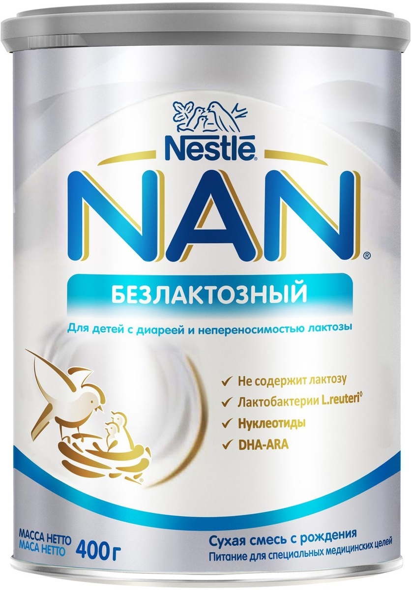 Молочная смесь Nestle NAN Безлактозная, при непереносимости лактозы и диарее, с рождения, 400 г