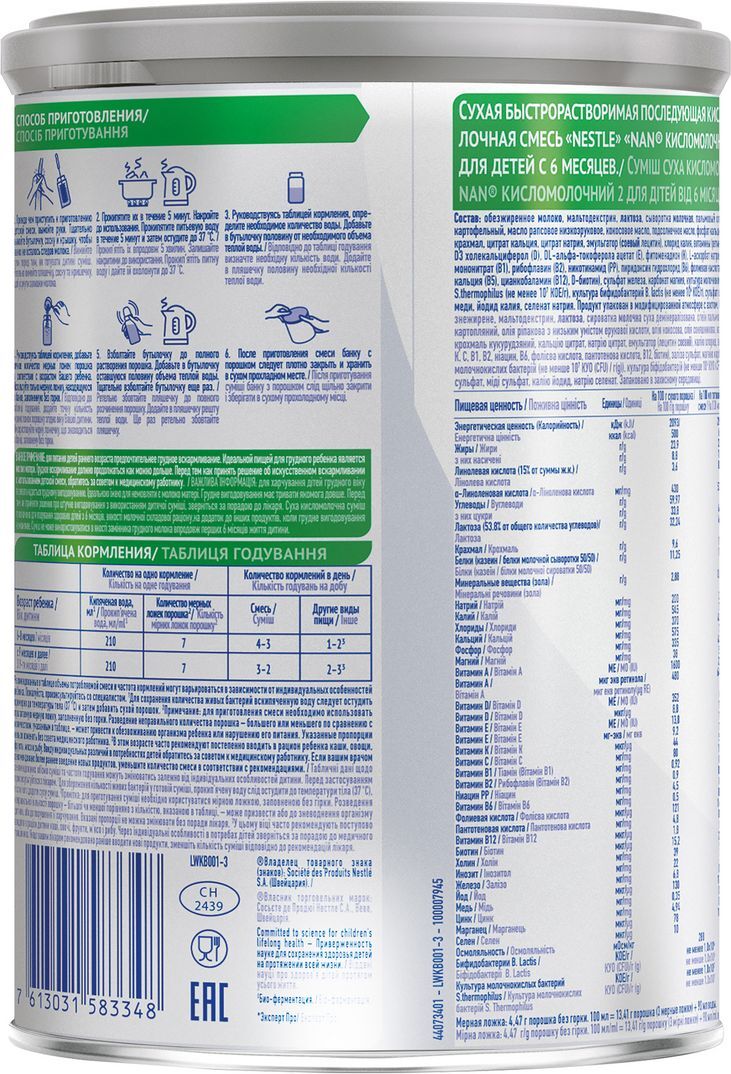 Молочная смесь Nestle NAN 2, кисломолочная, для улучшения пищеварения, с 6 месяцев, 400 г