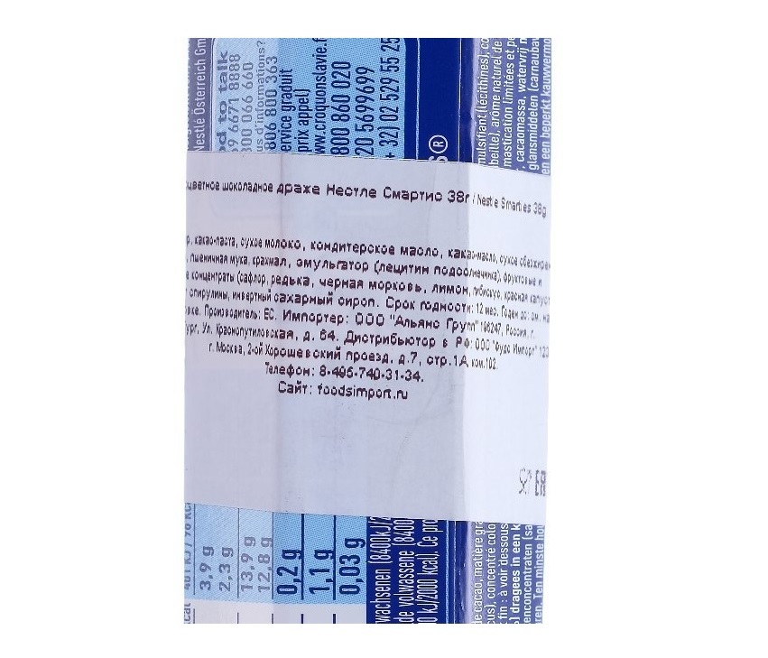 Шоколадное драже Smarties, Германия, 3 штуки по 38 г