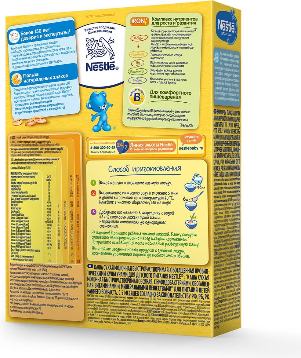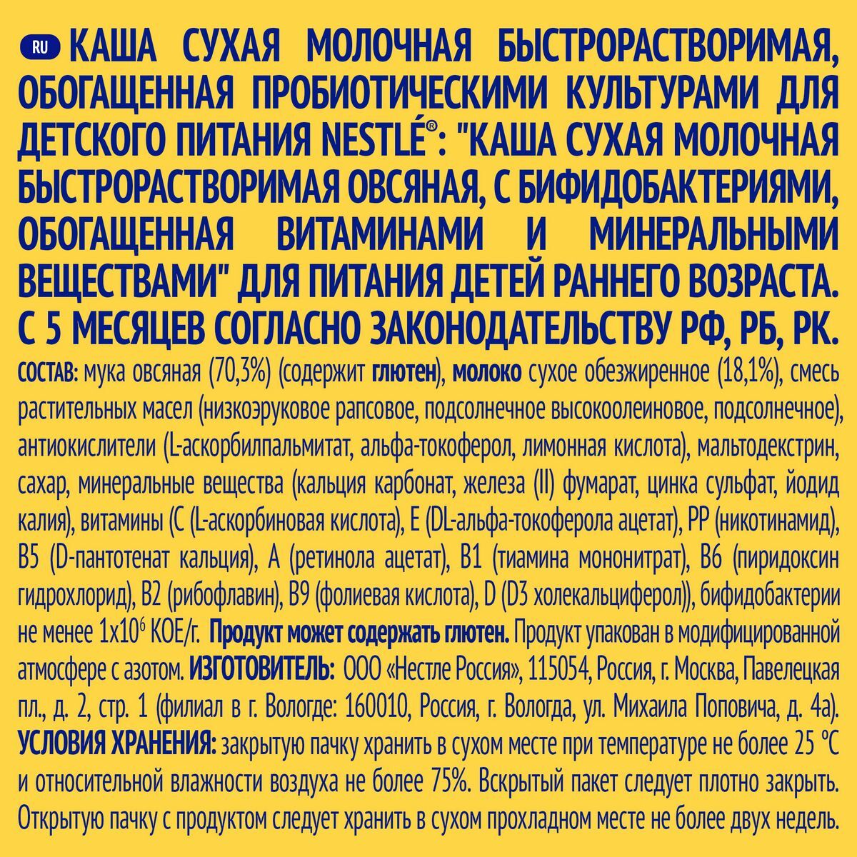 Нестле каша безмолочная овсяная с бифидобактериями 200г