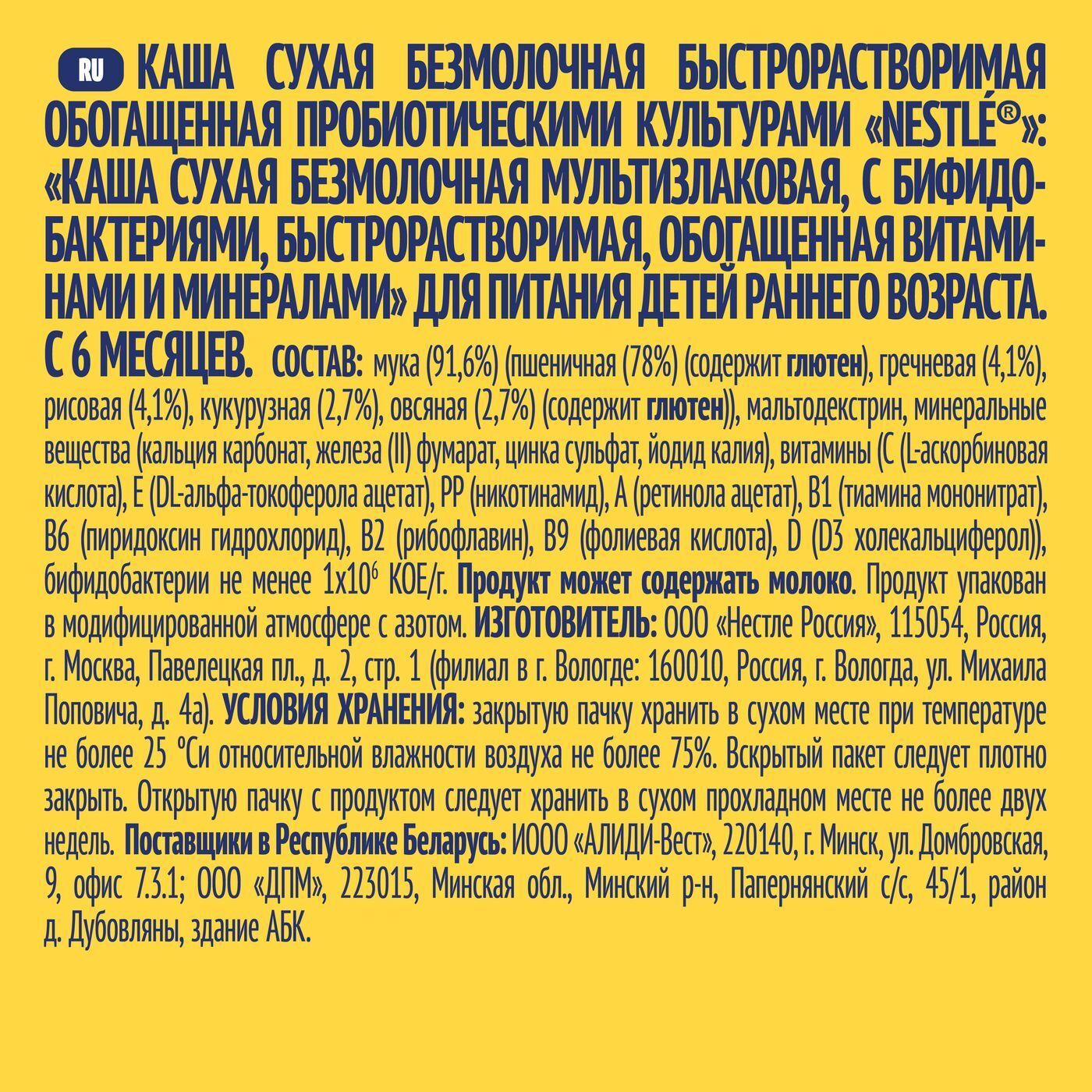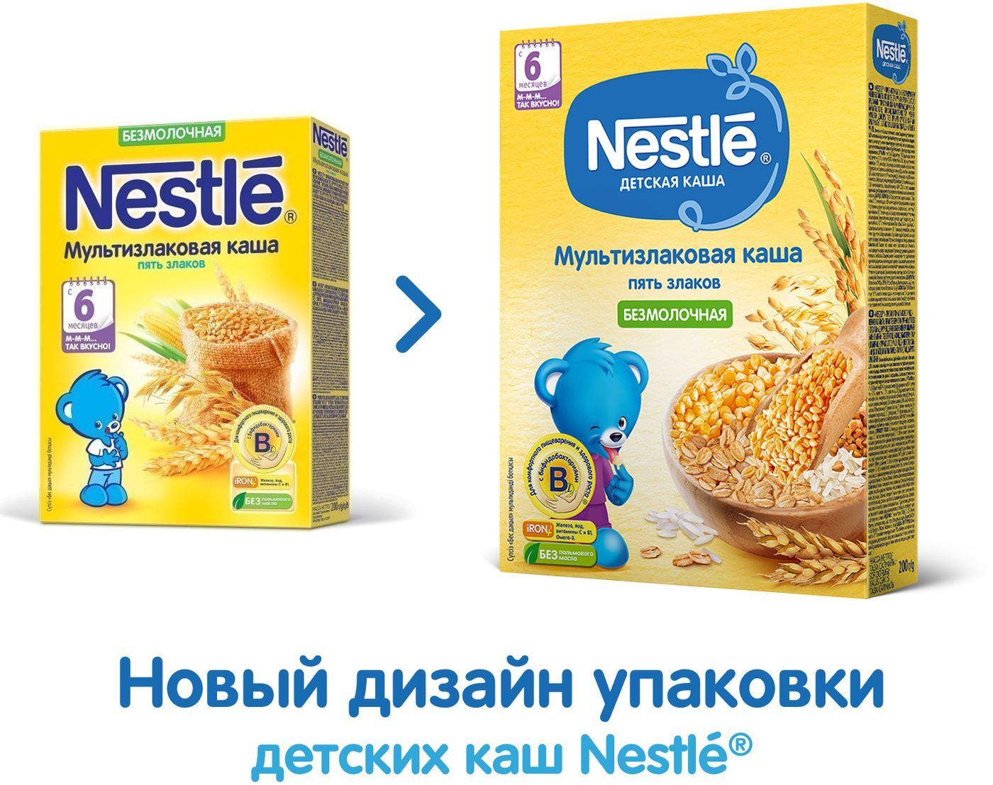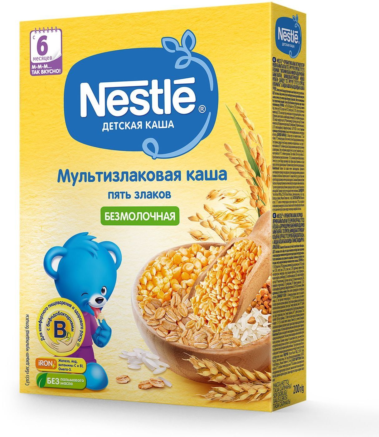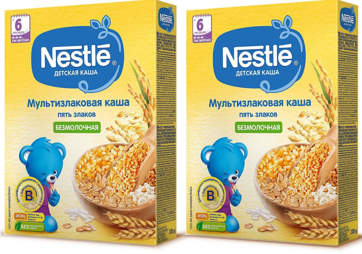 Каша безмолочная Nestle мультизлаковая, 5 злаков, с бифидобактериями, с 6 месяцев, 2 шт по 200 г