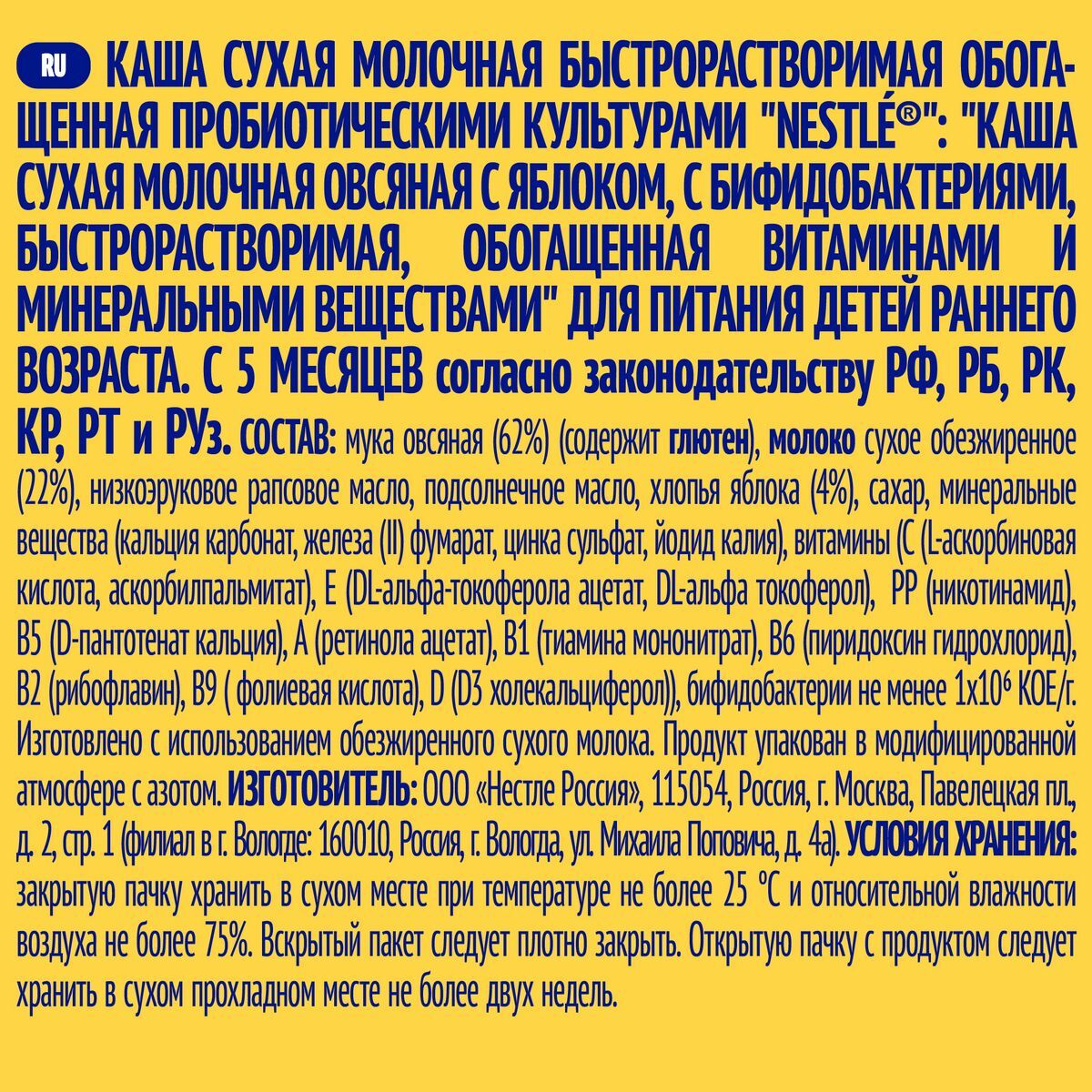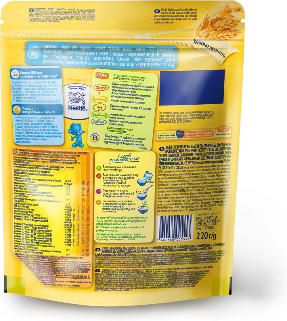 Нестле каша сухая молочная овсяная с яблоком и бифидумбактериями 220г