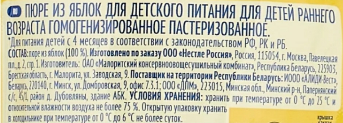 Пюре Nestle Яблоко, с 4 месяцев, 90 г