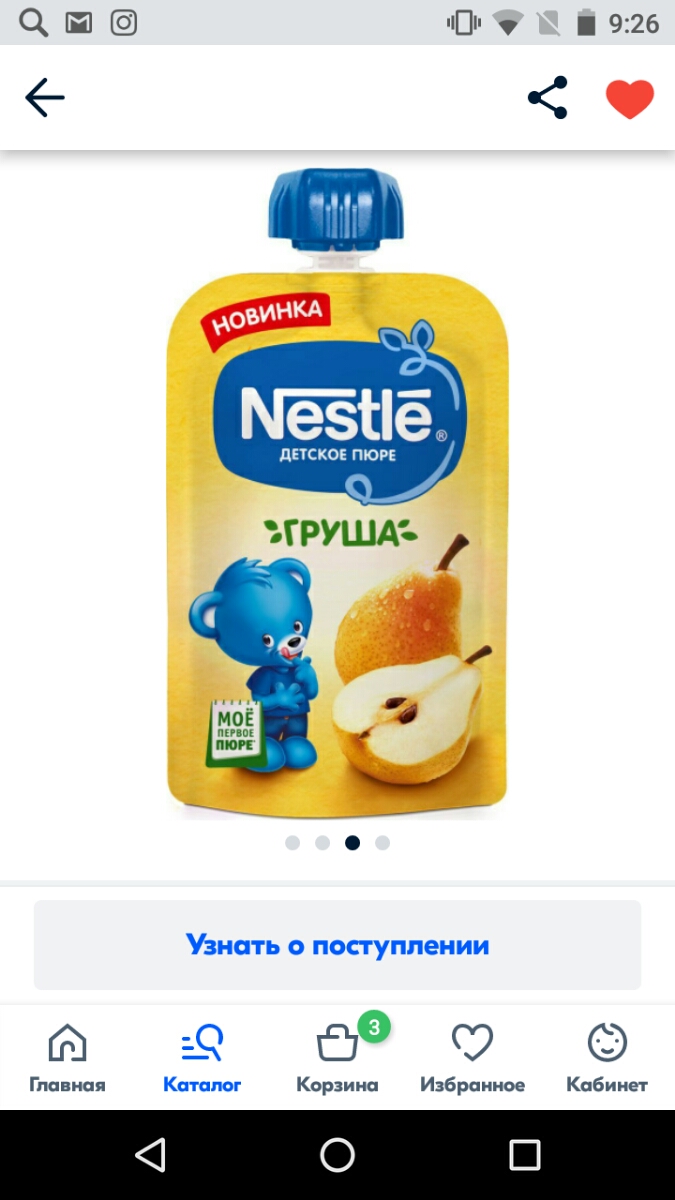 Пюре Nestle Груша, с 4 месяцев, 90 г