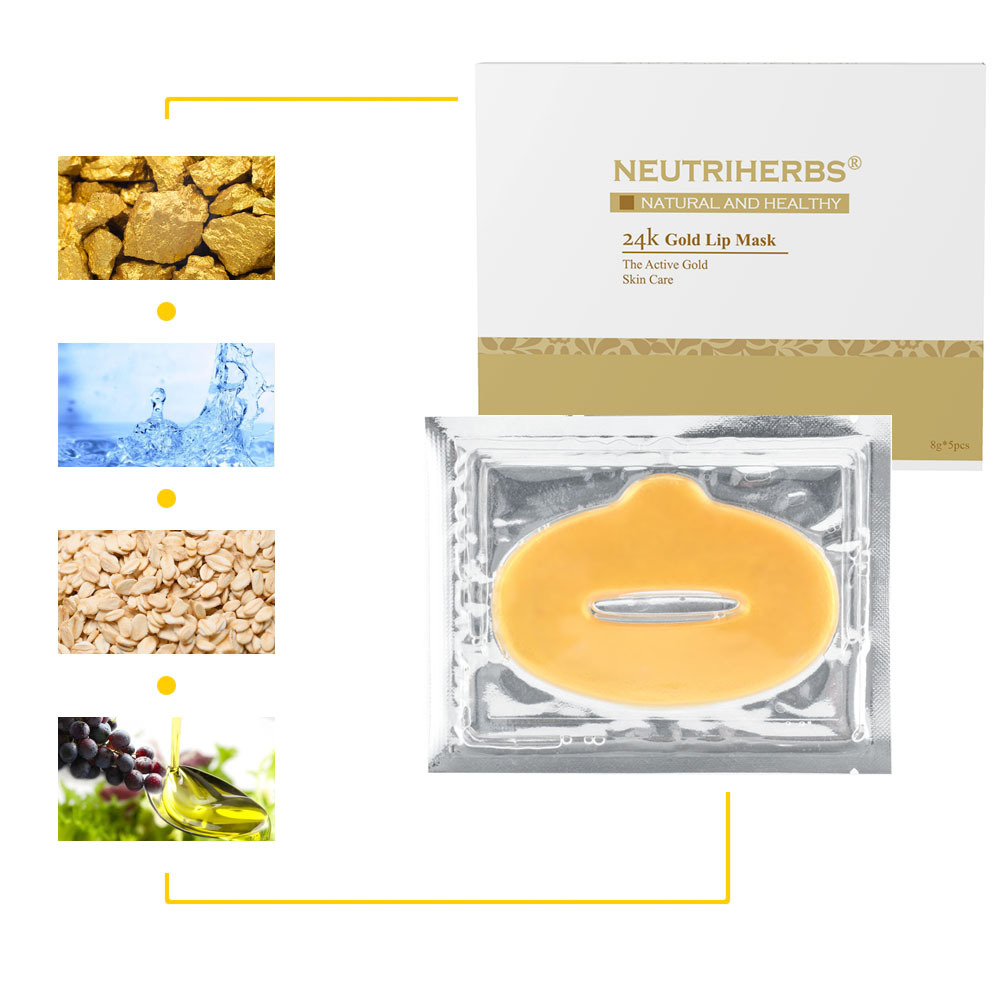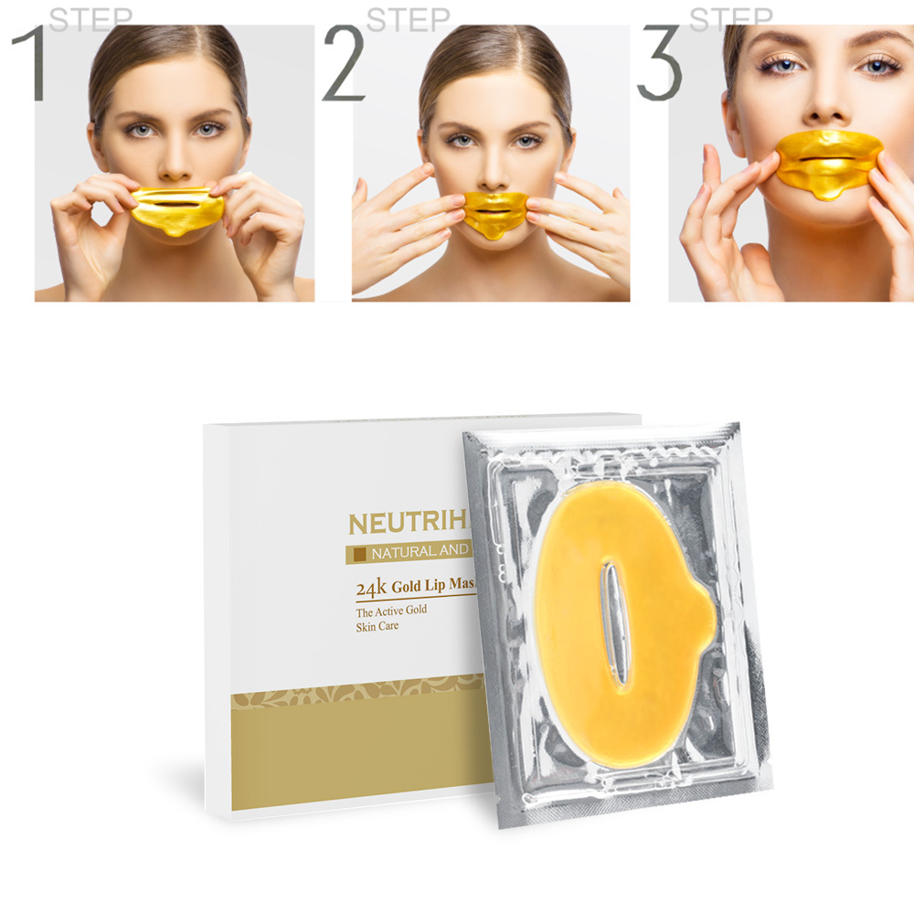 NEUTRIHERBS Золотая маска для губ 24K с коллагеном ,ретинолом (витамин А) и гиалуроновой кислотой, 5 шт