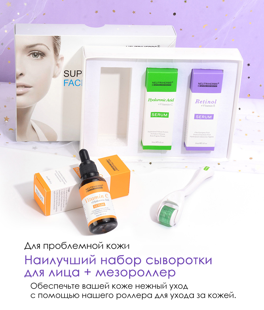 NEUTRIHERBS / Набор сывороток для лица: витамин С, гиалуроновая кислота, Ретинол, 3* 30 мл.