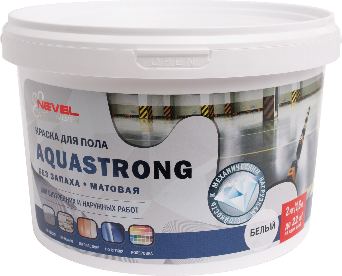 Краска Nevel Silver Гладкая, Акриловая, Матовое покрытие, 1,6 л, 2 кг, белый