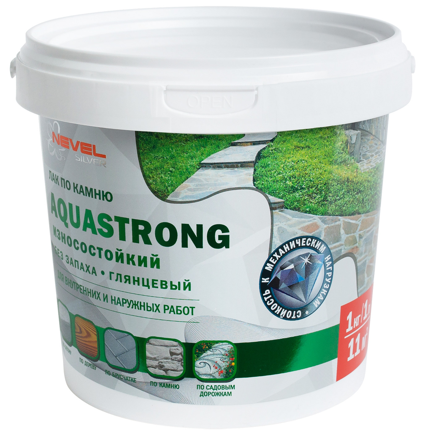 Лак по камню высокопрочный глянцевый Nevel Silver 1 кг / 1 л до 11 м2