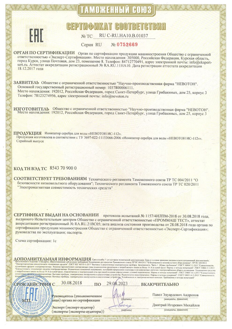 Осеребритель-ионизатор воды Невотон "ИС-112"