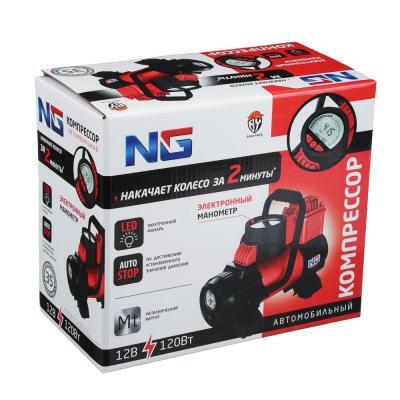 Автомобильный компрессор, манометр, штекер прикур, LED фонарь, 12V, 120W, 35 л/мин, металл