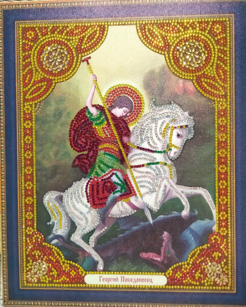Алмазная мозаика "Икона Семистрельная" частичная выкладка, на подрамнике, 27х33 см