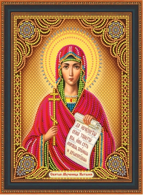 Алмазная мозаика "Икона Святая Мученица Наталия" частичная выкладка, на подрамнике, 27х33 см