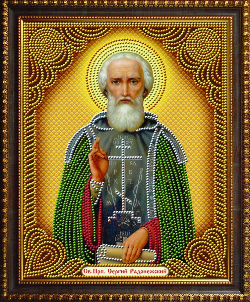 Алмазная мозаика "Икона Сергий Радонежский" частичная выкладка, на подрамнике, 27х33 см