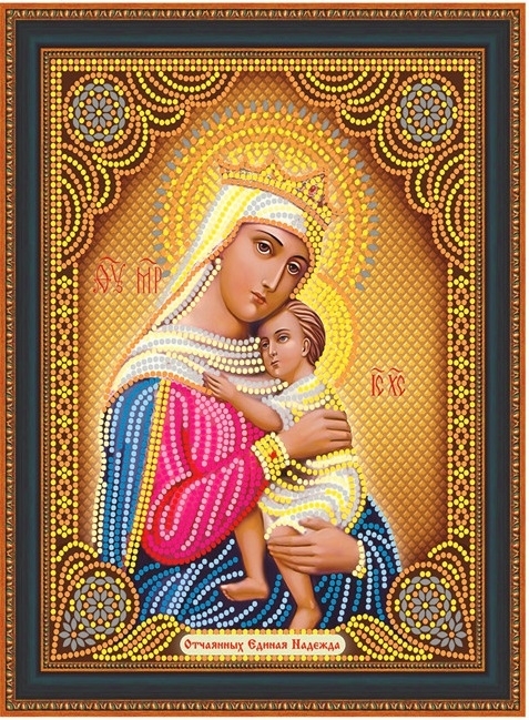 Алмазная мозаика "Икона Отчаянных Единая Надежда" частичная выкладка, на подрамнике, 27х33 см