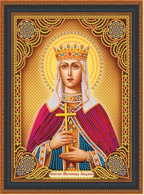 Алмазная мозаика "Икона Святая Мученица Людмила" частичная выкладка, на подрамнике, 27х33 см