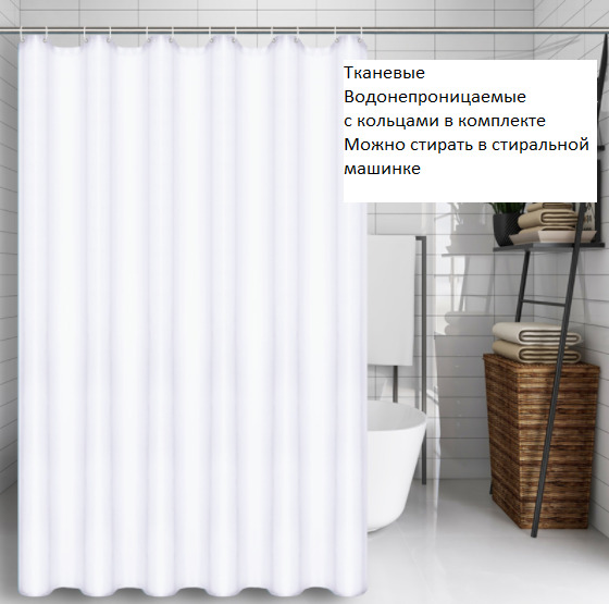 Тканевая Шторка/Занавеска для ванной, тканевая, водонепроницаемая, голубая (Нежно- голубая)