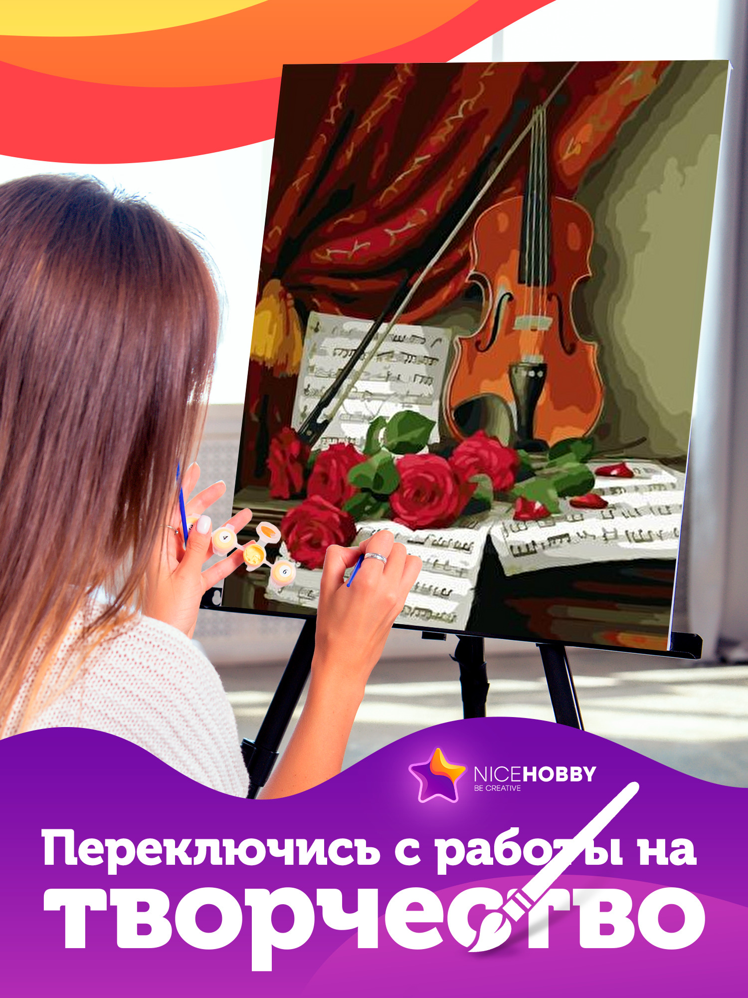 Картина по номерам на Холсте 40 х 50 см Розы и скрипка на Подрамнике