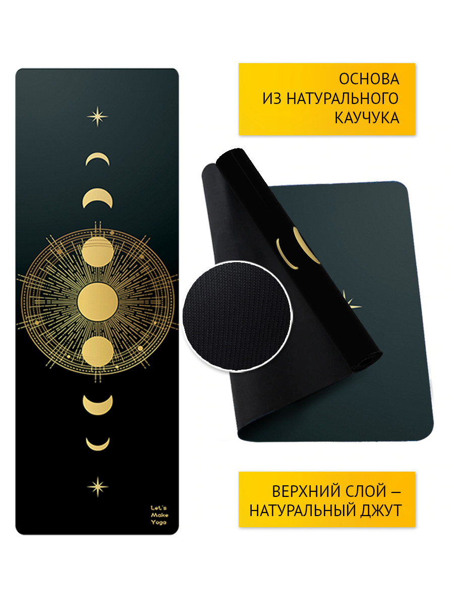 Коврик для йоги Гелиос, увеличенная длина 61*183 см, толщина 3 мм, материал джут + каучук, бренд NiiDRA