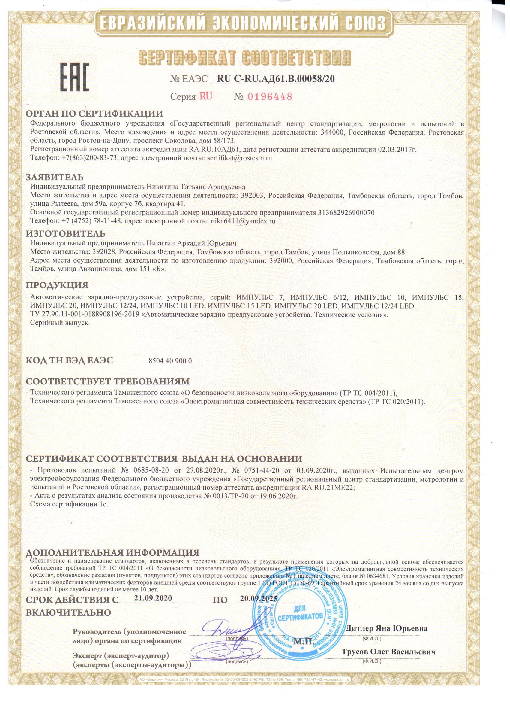 Зарядное устройство для автомобильного аккумулятора (АКБ) НикА АнтаС Импульс 20 LED
