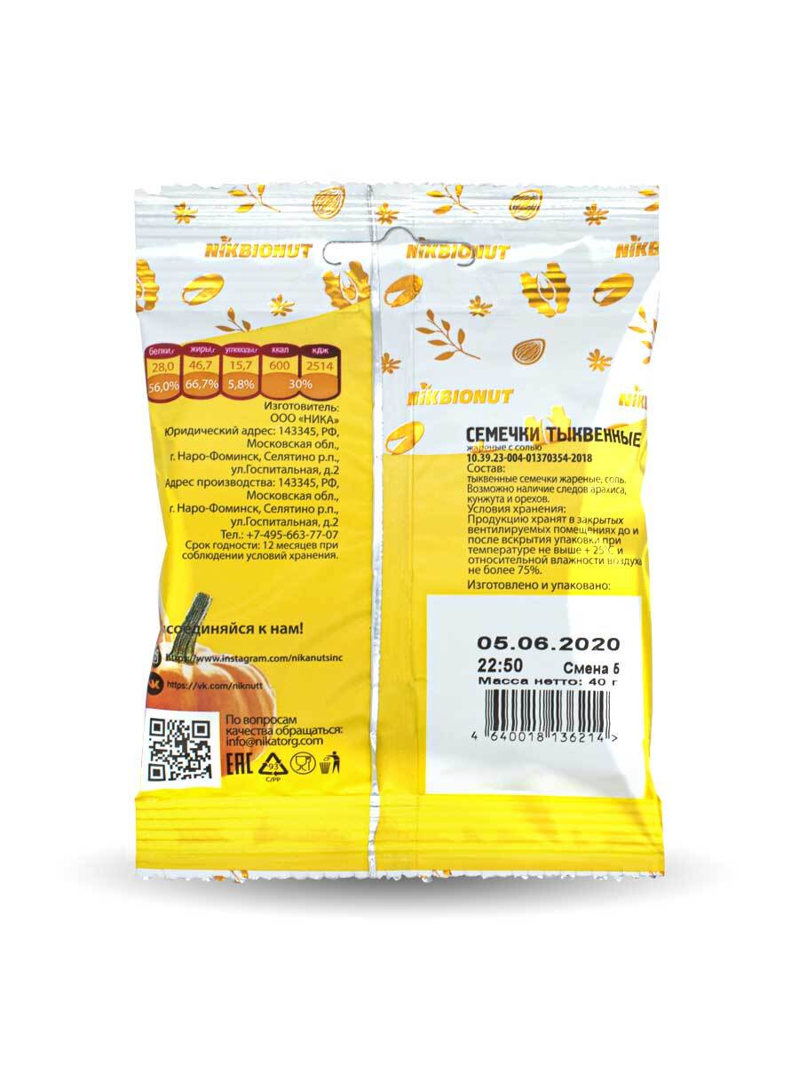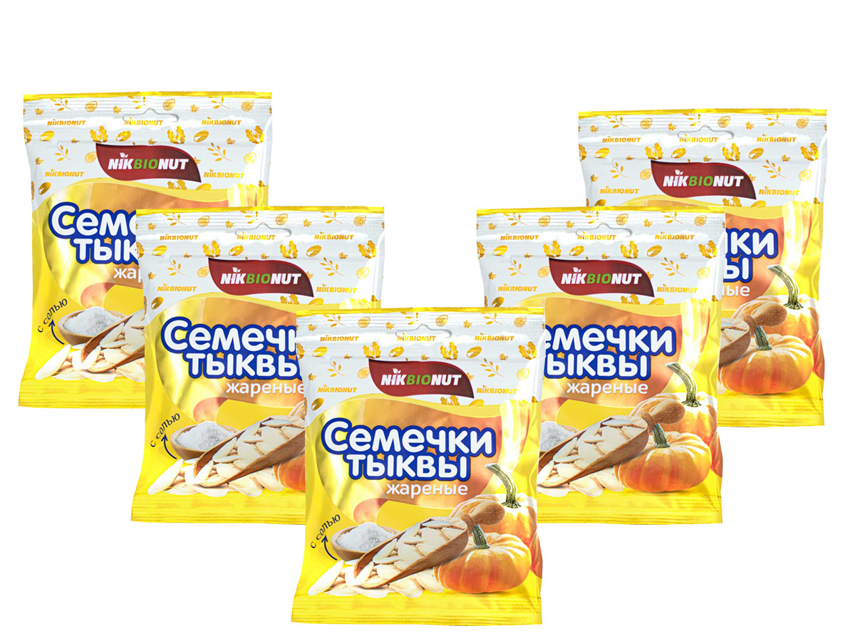 NIKBIONUT Тыквенные семечки жареные соленые 5шт. по 40гр.