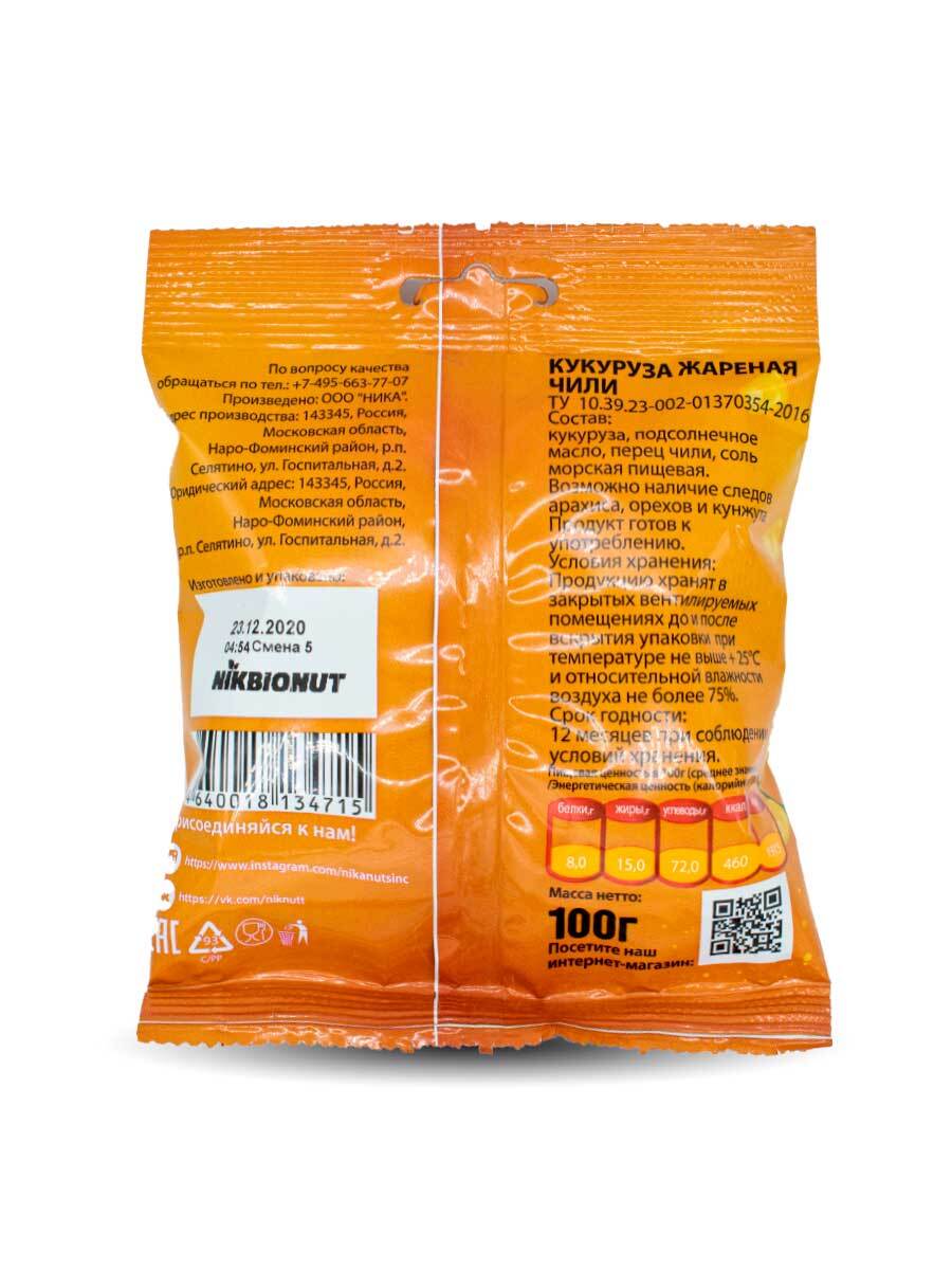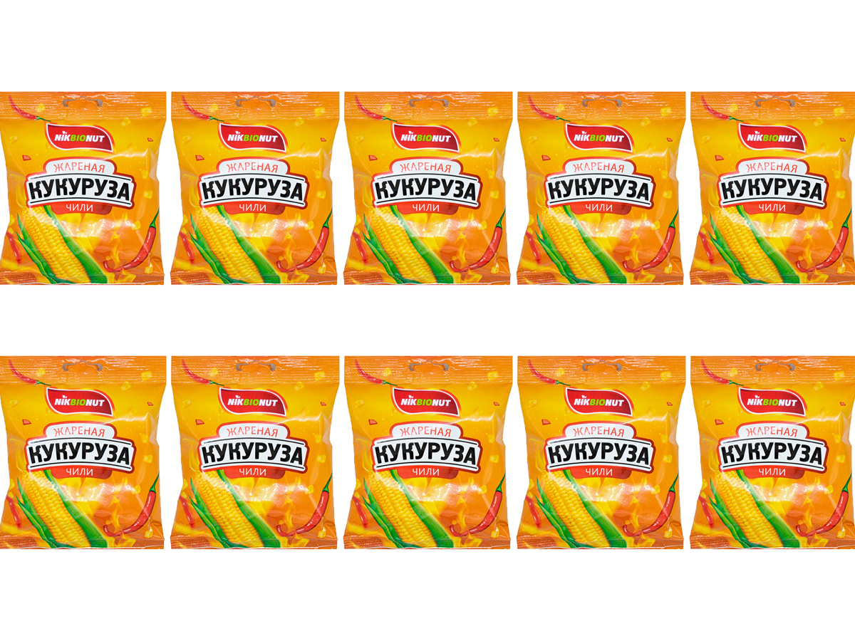 NIKBIONUT Кукуруза жареная со вкусом Чили 10 шт по 100 г.