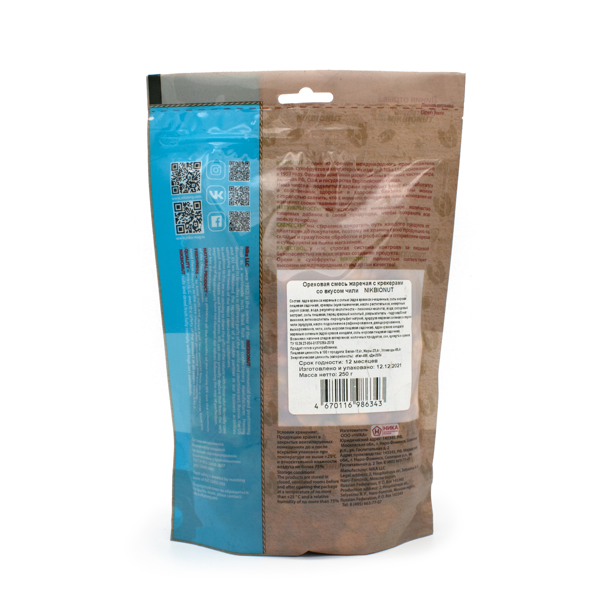 NIKBIONUT Микс ореховый с крекерами Чили 250 г