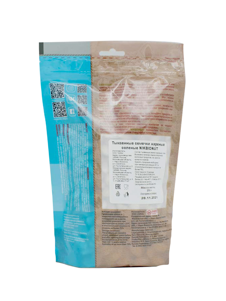 NIKBIONUT Тыквенные семечки жареные соленые 250 г
