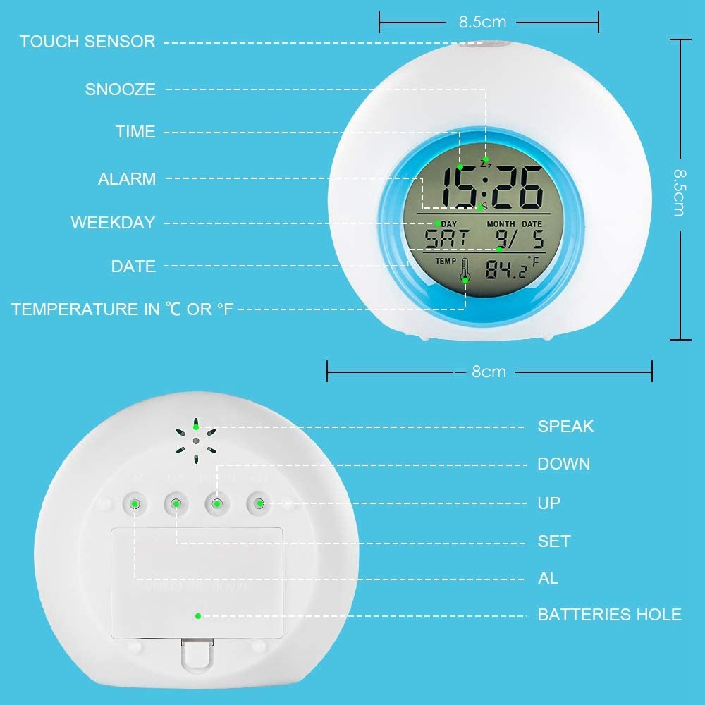 Цифровой будильник с функцией повтора 7 цветов, ночник для детской спальни