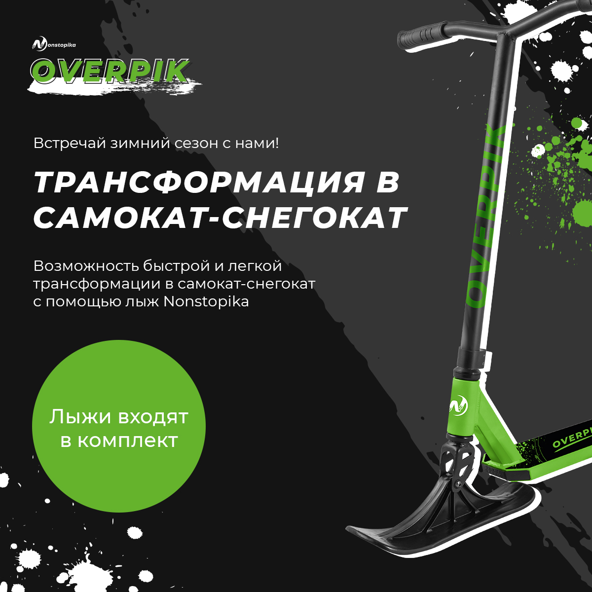 Снегокат Трюковой Nonstopika трюковый Overpik с лыжами (Black), 100 мм