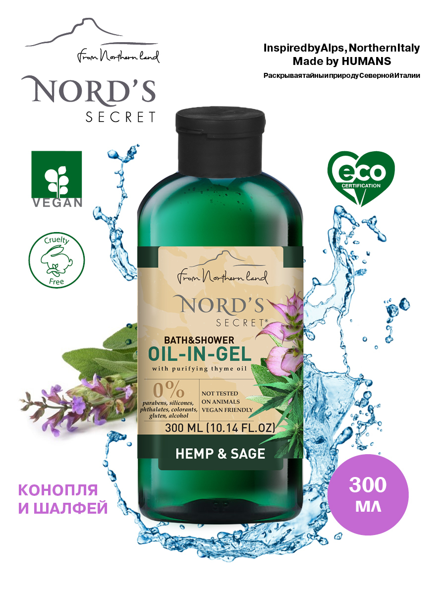 NORD'S SECRET ЭКО Косметика Тонизирующий гель для душа с эфирным маслом Шалфей", 300 мл