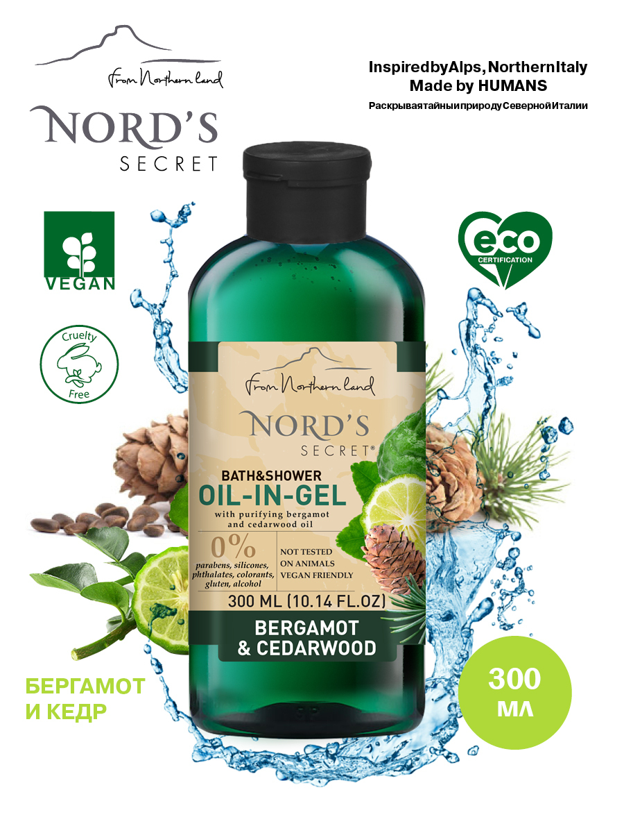 NORD'S SECRET ЭКО Косметика Тонизирующий гель для душа с эфирным маслом "Бергамот и Кедр", 300 мл
