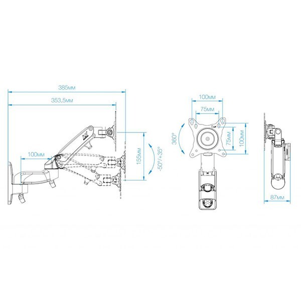 North Bayou NB F100A белый,кронштейн для телевизора,монитора,газлифт