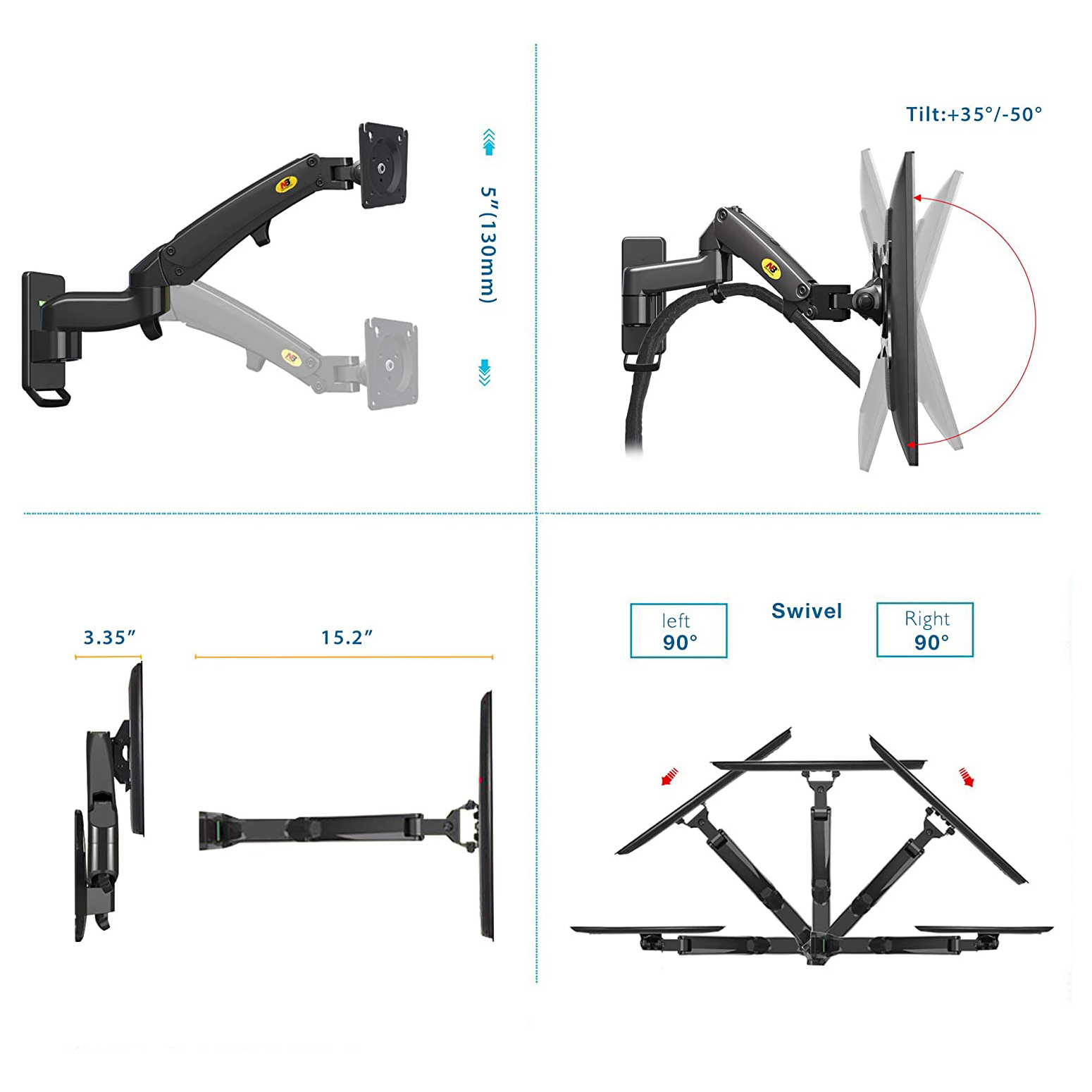 Кронштейн North Bayou NB F150 для телевизора или монитора, настенный, наклонно-поворотный, систем
