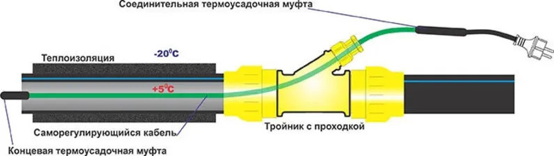 Греющий кабель NORVI, 200 Вт, 20 м., для обогрева внутри трубы с питьевой водой