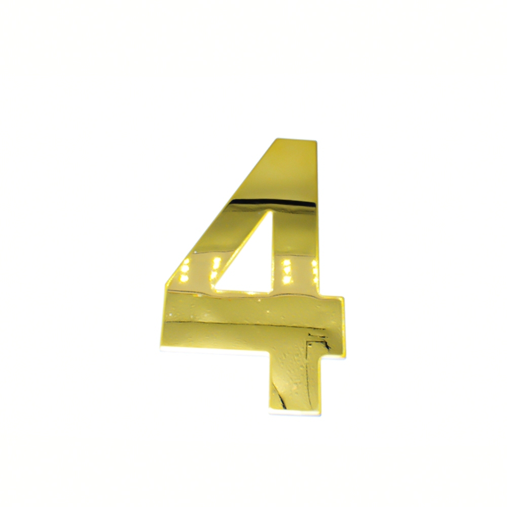 Номер дверной "4" металл, клеевая основа PB (золото)