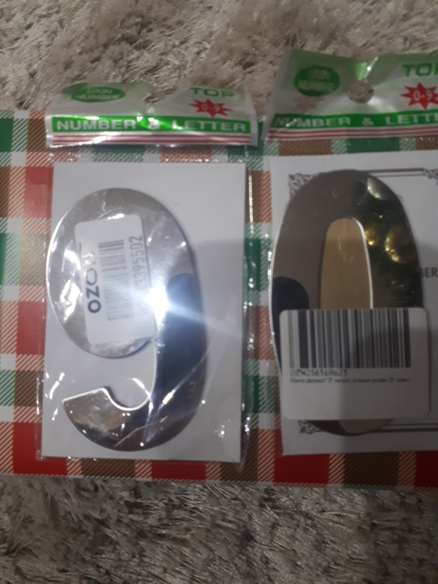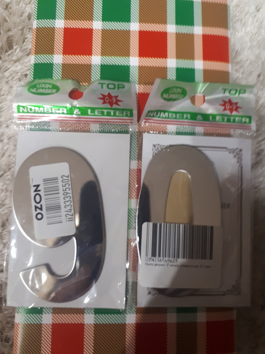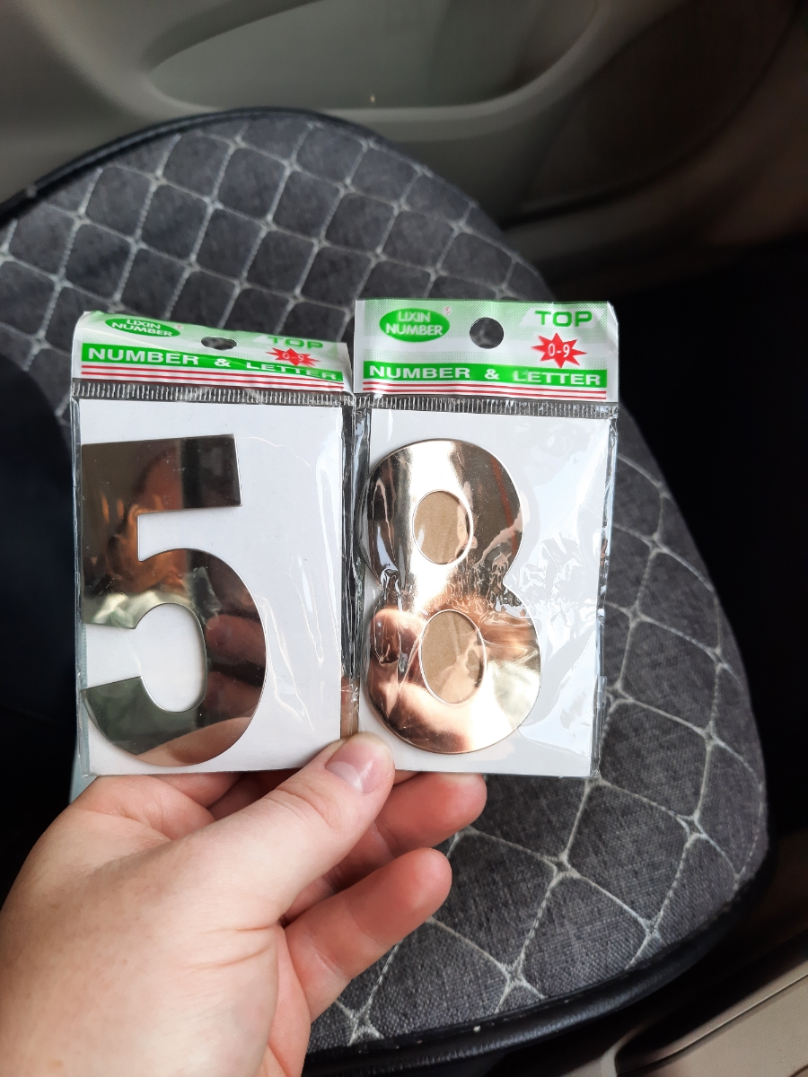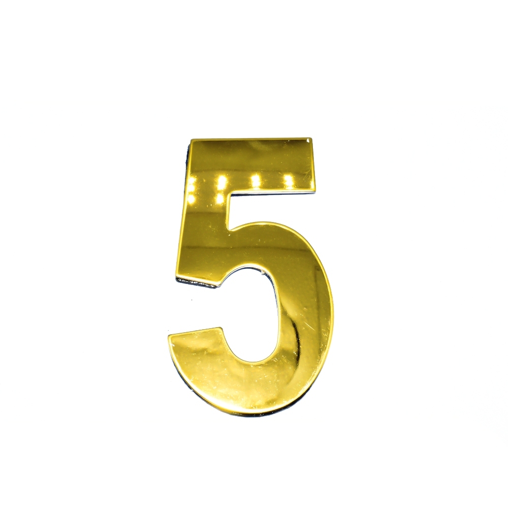 Номер дверной "5" металл, клеевая основа PB(золото)