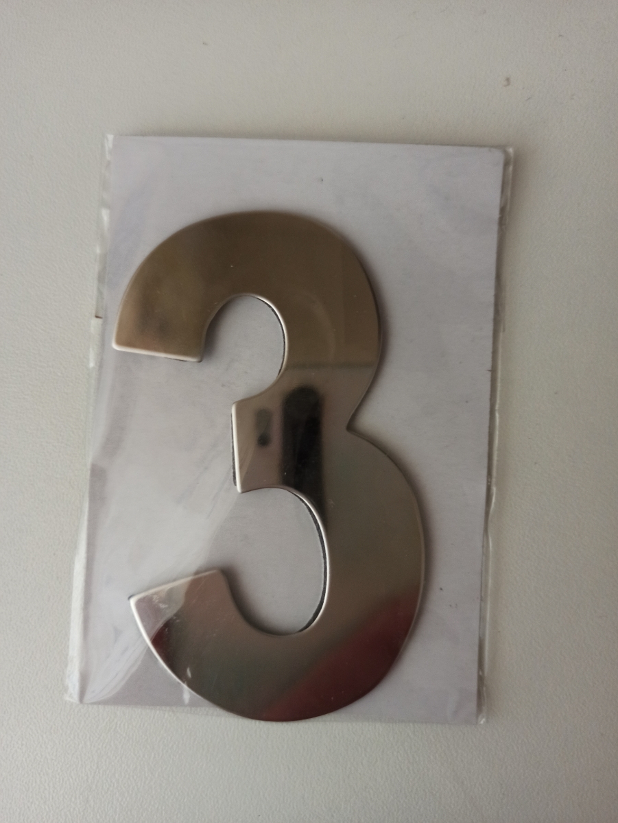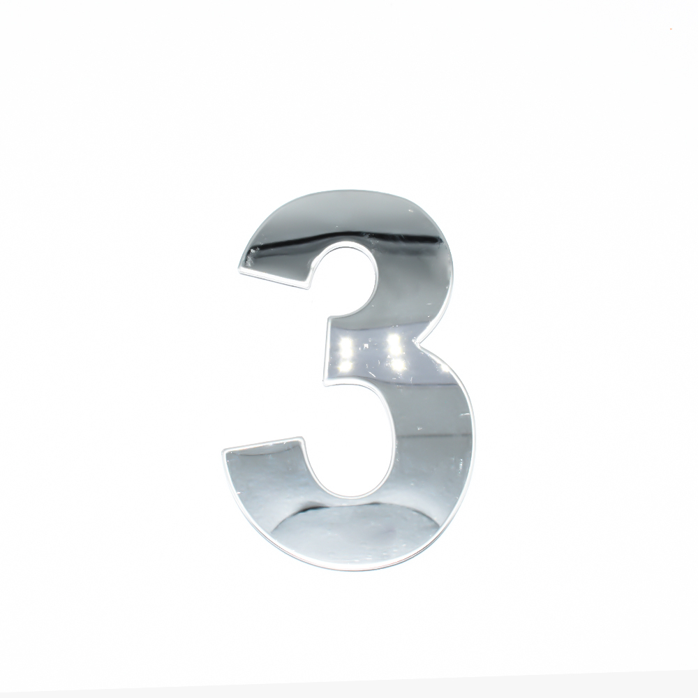 Номер дверной "3" металл, клеевая основа CP (хром)