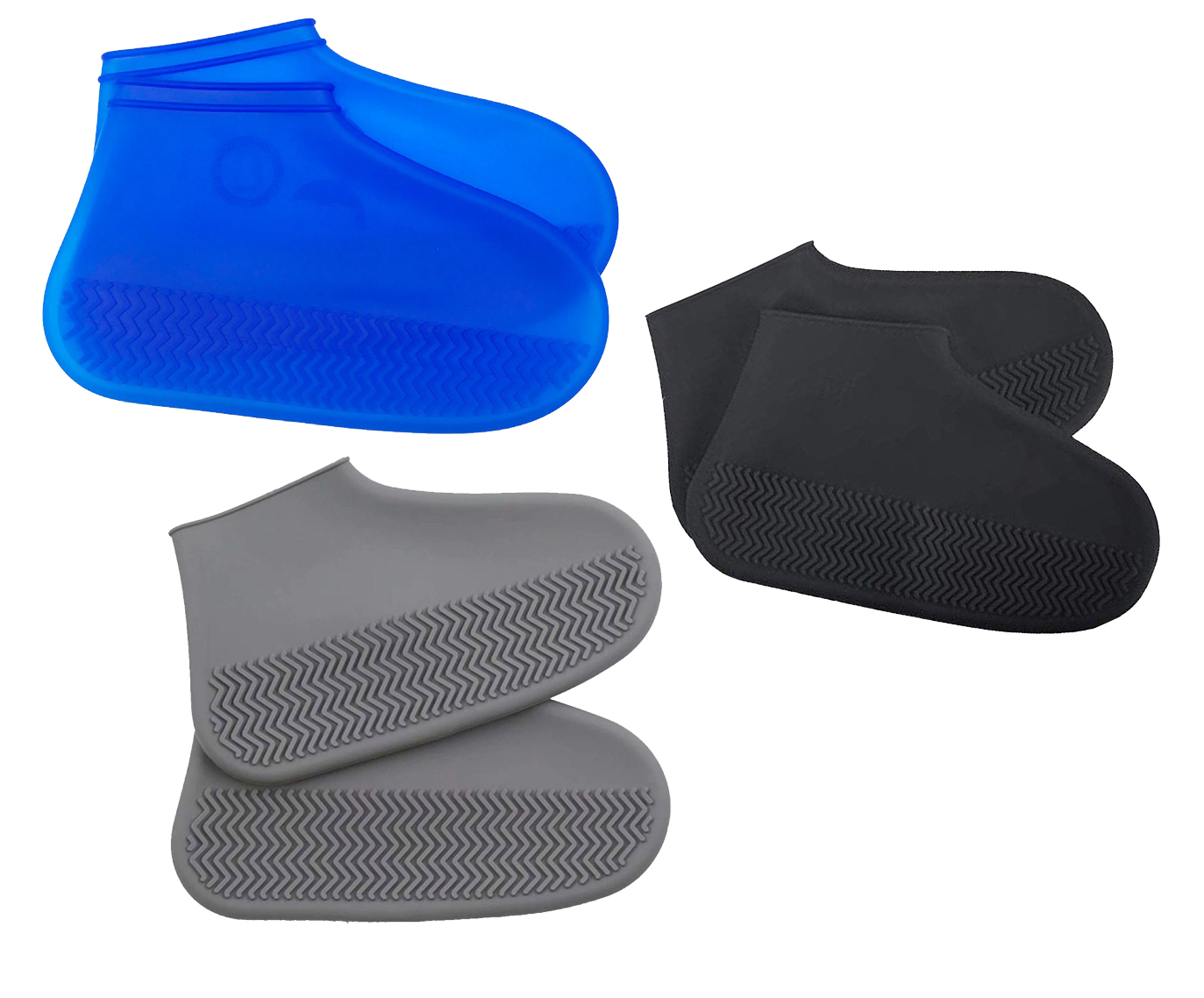 Комплект силиконовых чехлов для обуви размер M, 3 пары, цвета: черный, серый, синий
