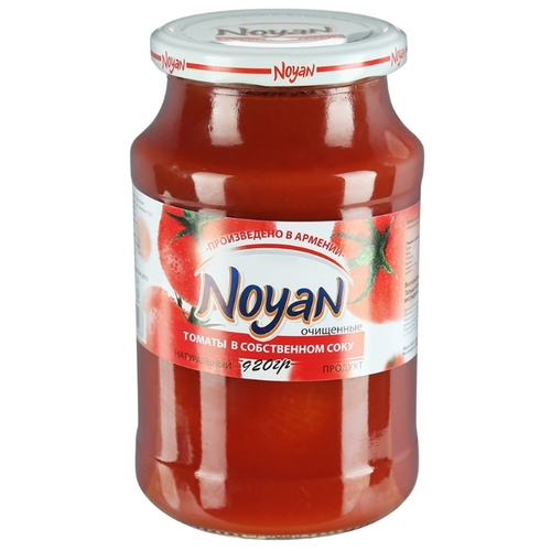 Томаты очищенные в собственном соку NOYAN стеклянная банка 920 г