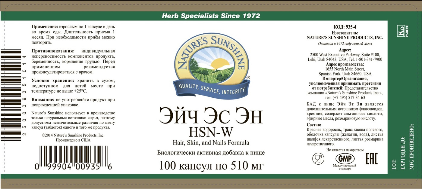 Эйч Эс Эн НСП (Кожа, Волосы, Ногти) / HSN-W NSP