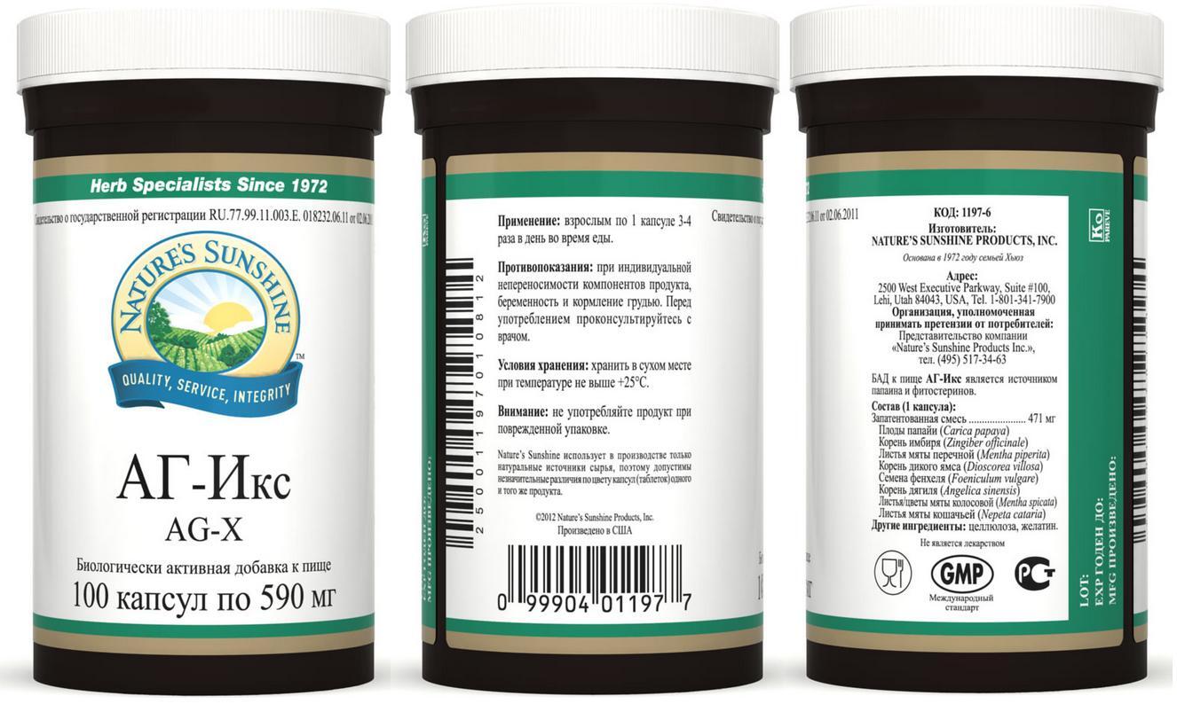 АГ- Икс НСП / AG-X NSP Усиливает секрецию пищеварительных ферментов и желчи, 100 капсул по 590 мг