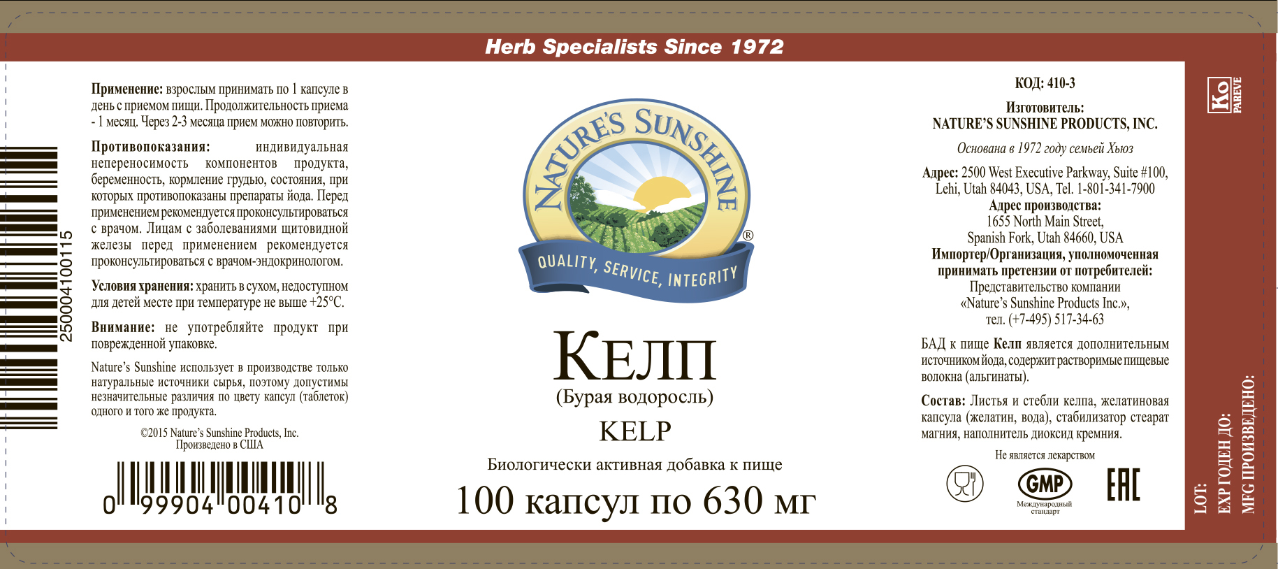 Келп (Бурая водоросль) НСП / Kelp NSP , 100 капс. бад