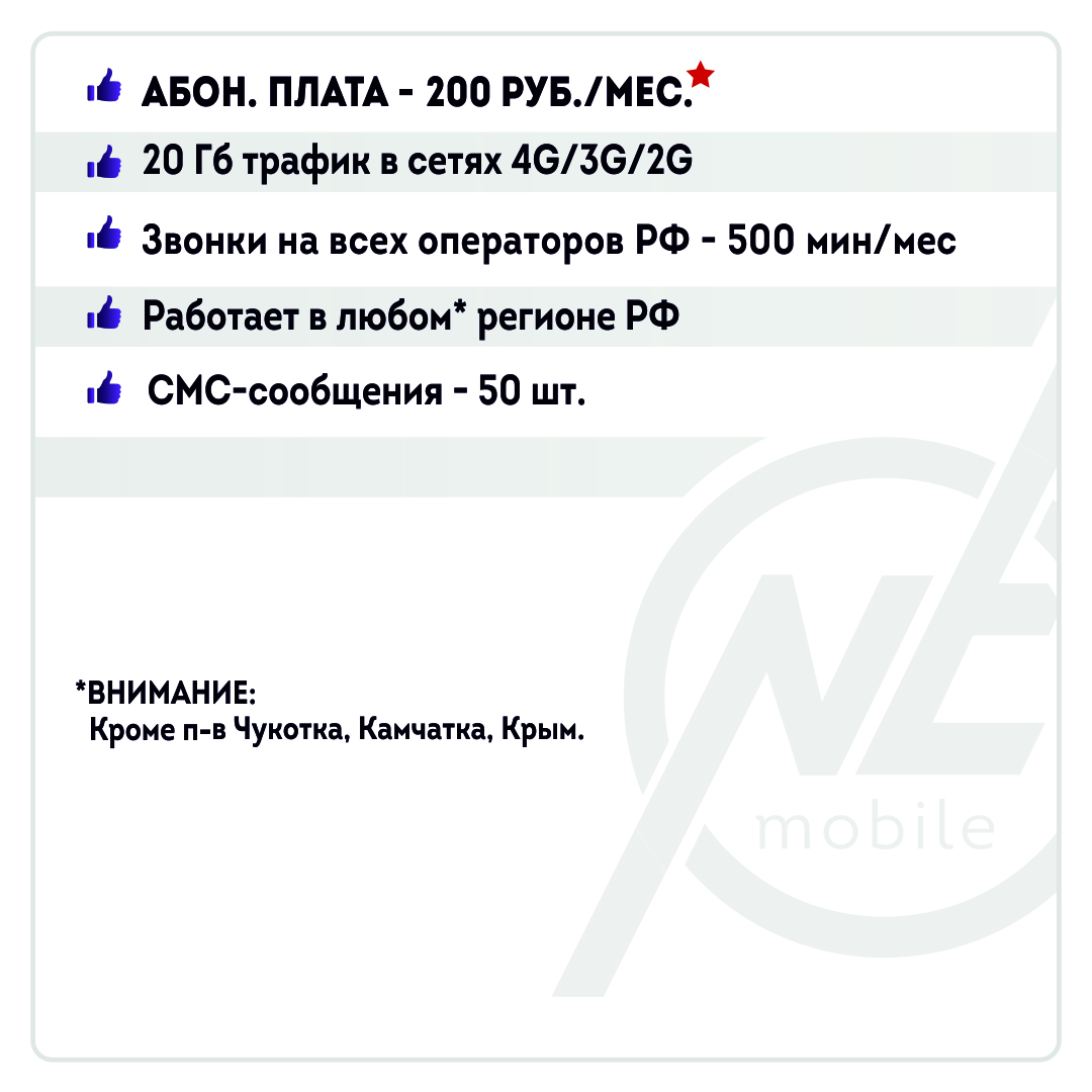Тариф для телефона, Тариф для роутера NTmobile Интернет и минуты за 200 (Вся Россия)