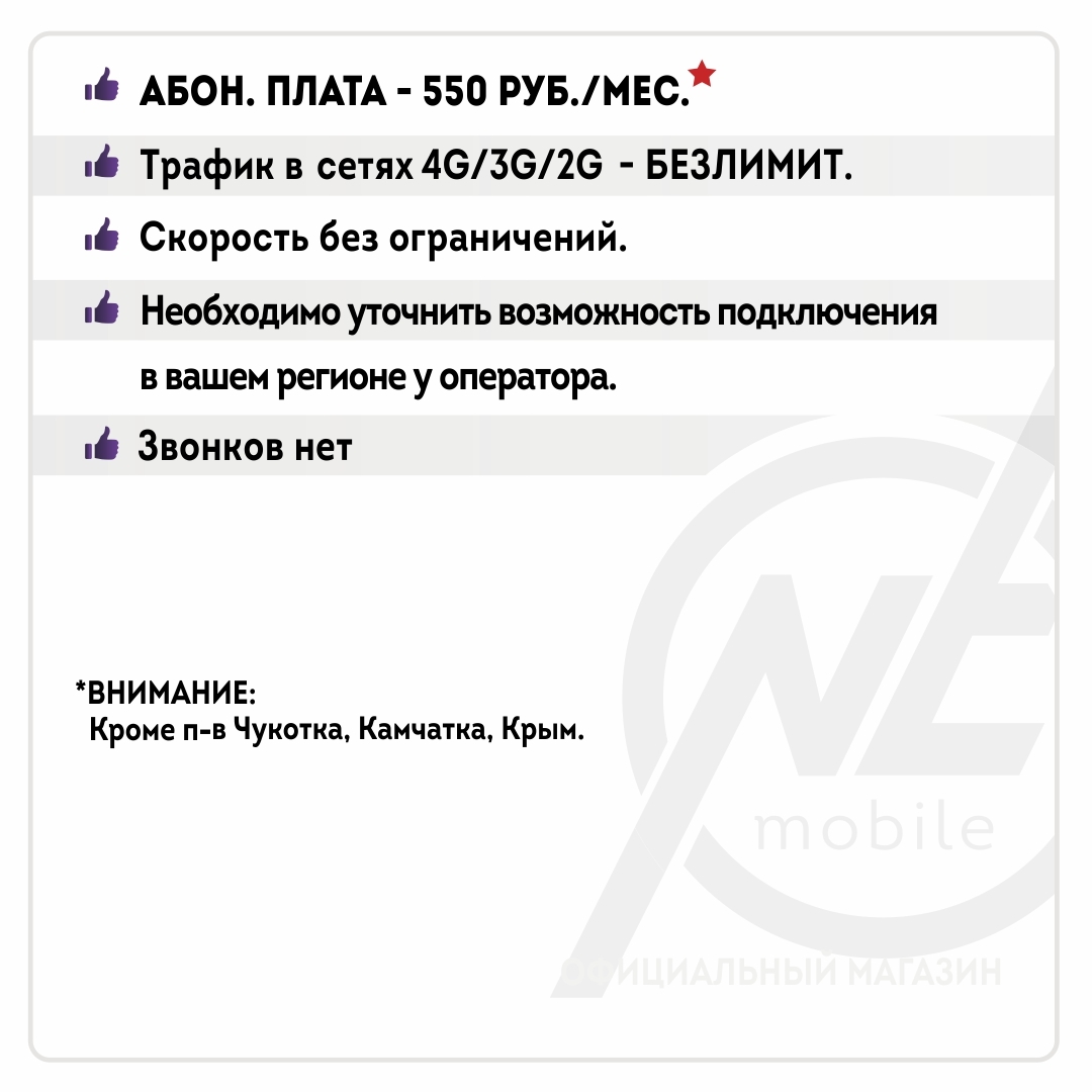 SIM-карта, Тариф для модема NTmobile Безлимит для модема (Вся Россия)