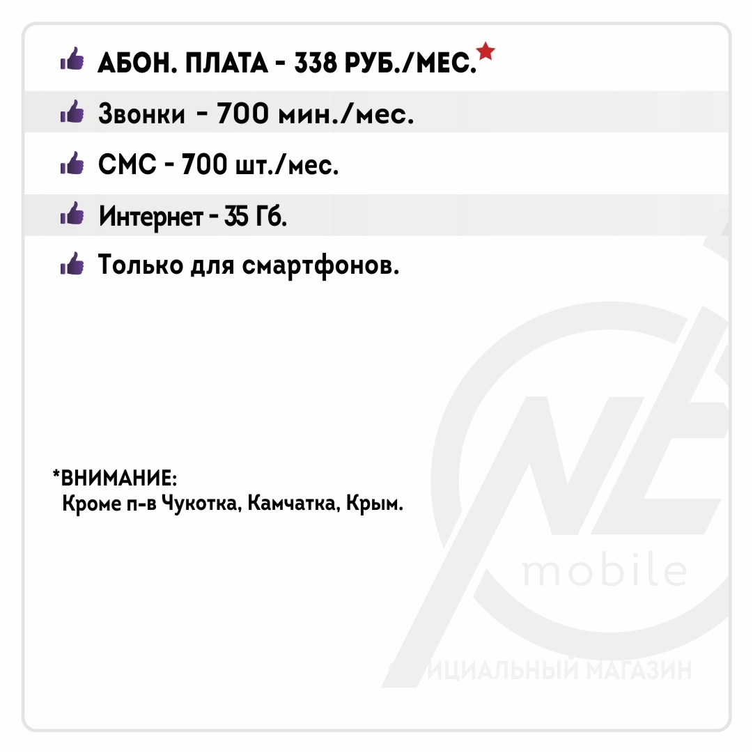 Тариф для телефона, Тариф для планшета NTmobile Интернет и звонки за 338 (Вся Россия)