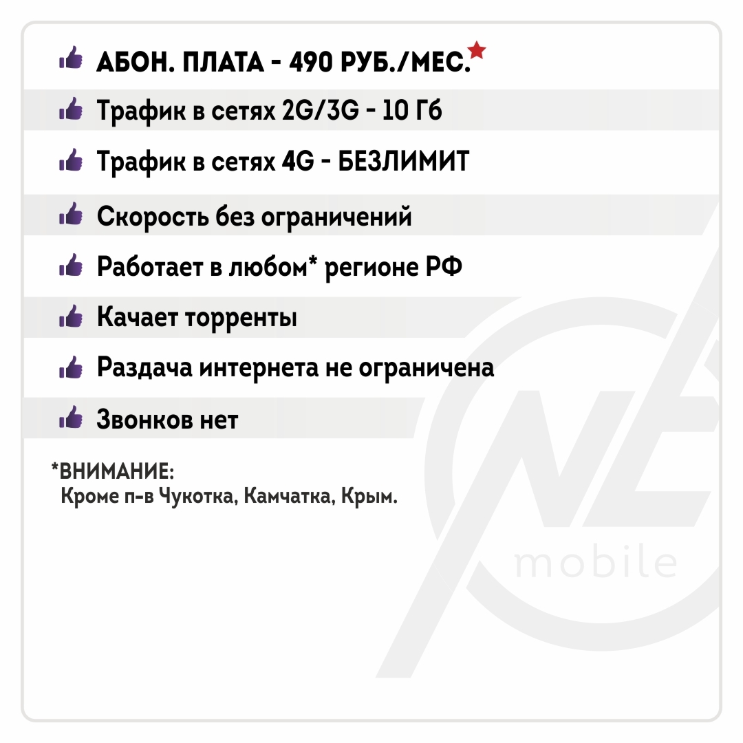 SIM-карта, Тариф для модема NTmobile Безлимитный интернет за 790 (Вся Россия)